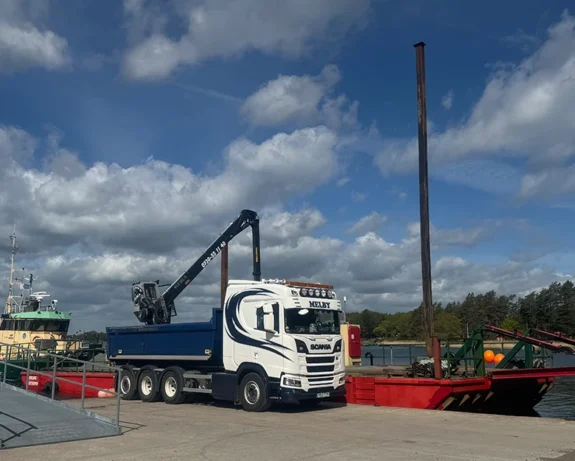 Våra lastväxlarbilar gör att vi kan anpassa mängd, fraktion och leverans efter varje kunds behov. Vi tar hand om allt från beställning till lossning på plats och ser till att leveransen sker med precision och omtanke – alltid i tid och med rätt kvalitet.